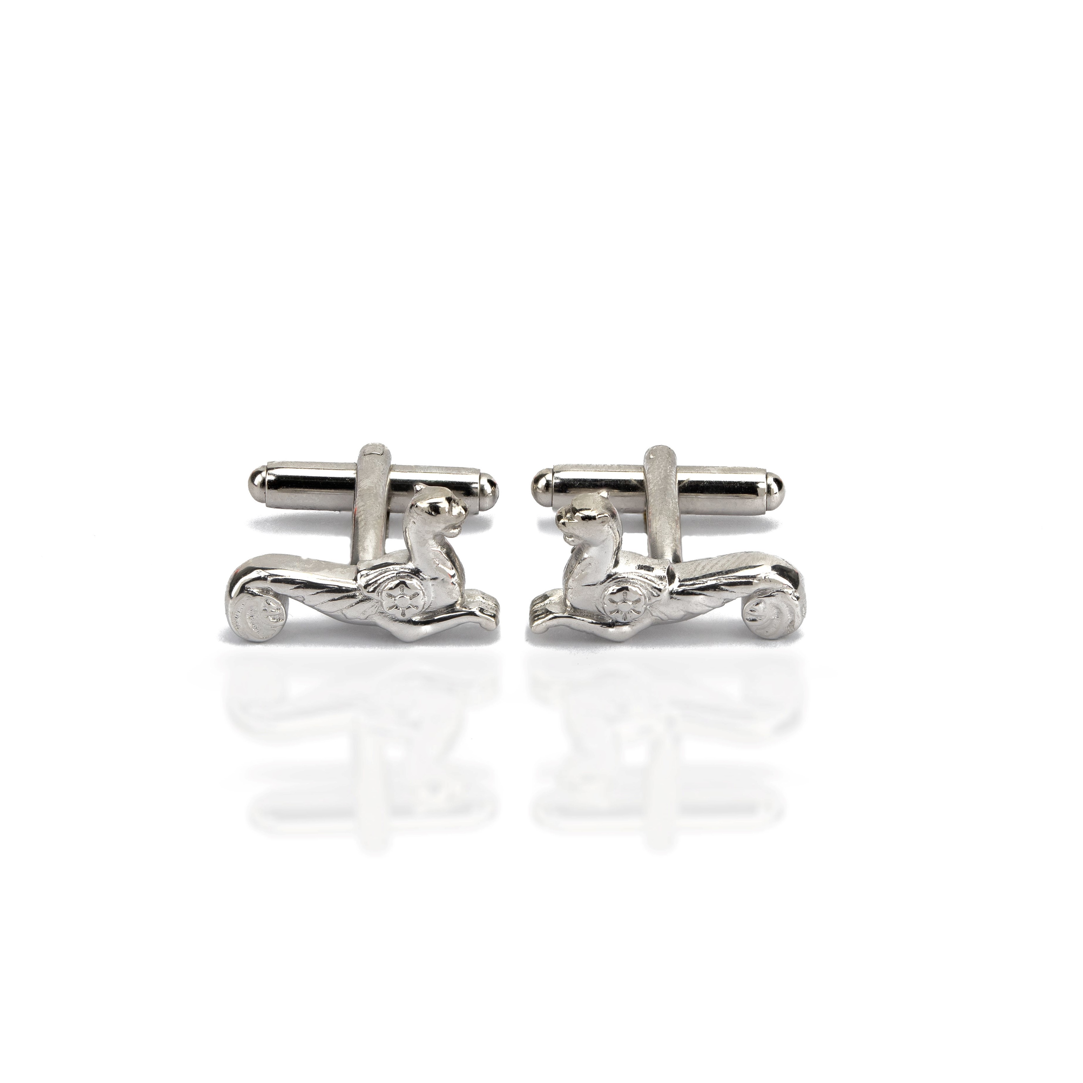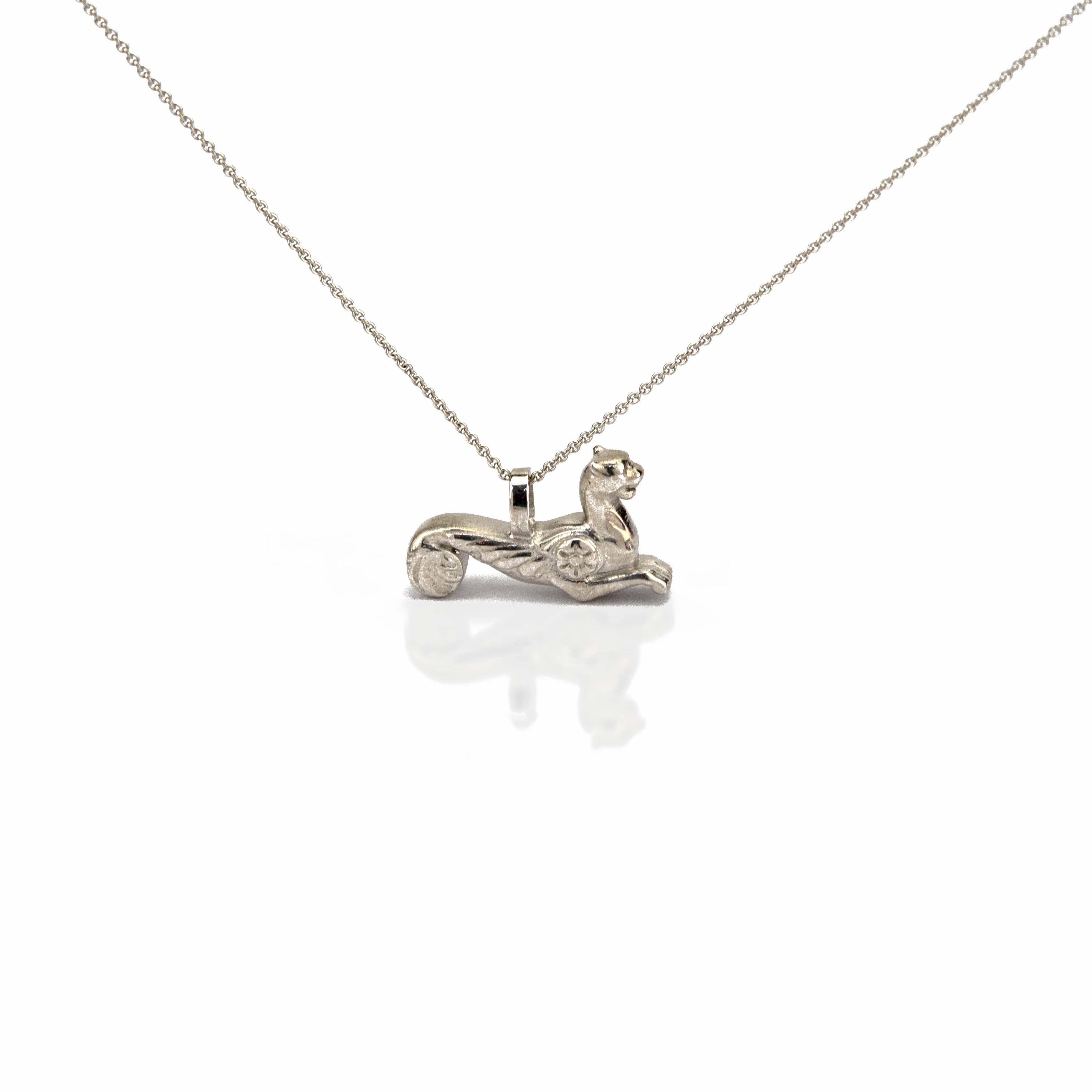 Die „geflügelte Löwin“ Kollektion ist als Anhänger an Kette, Ohrschmuck, „Boutonniere“ und als Manschettenknopf-Set konzipiert. Gefertigt in Handarbeit „Finest form“ – FEINFORM – handmade in Germany